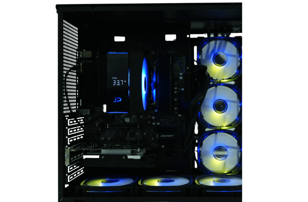 • Material de disipación::4 tubos de calor de cobre de 6 mm • Cubierta superior: Pantalla LED digital ARGB.